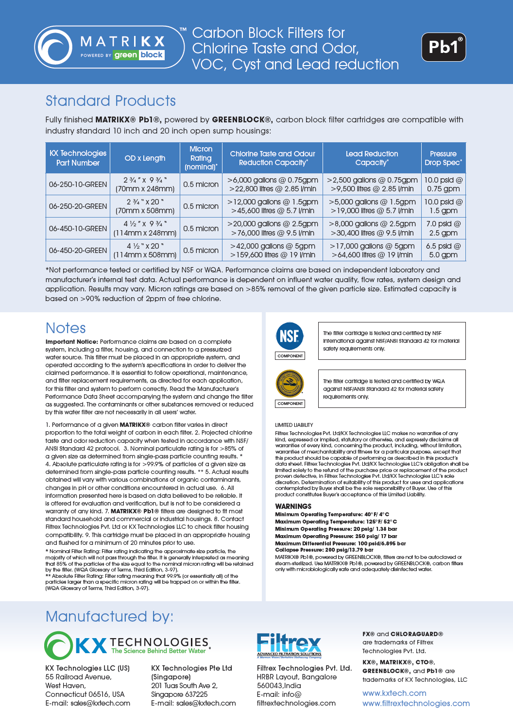 • Lead, Cyst & Turbidity reduction based on NSF/ANSI standard 53